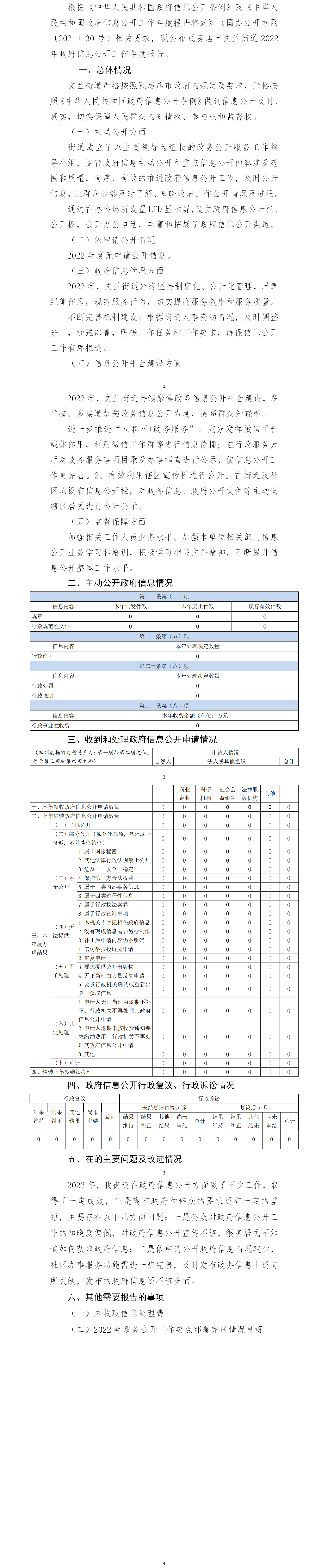 瓦房店市文兰街道办事处2022政务公开工作年度报告