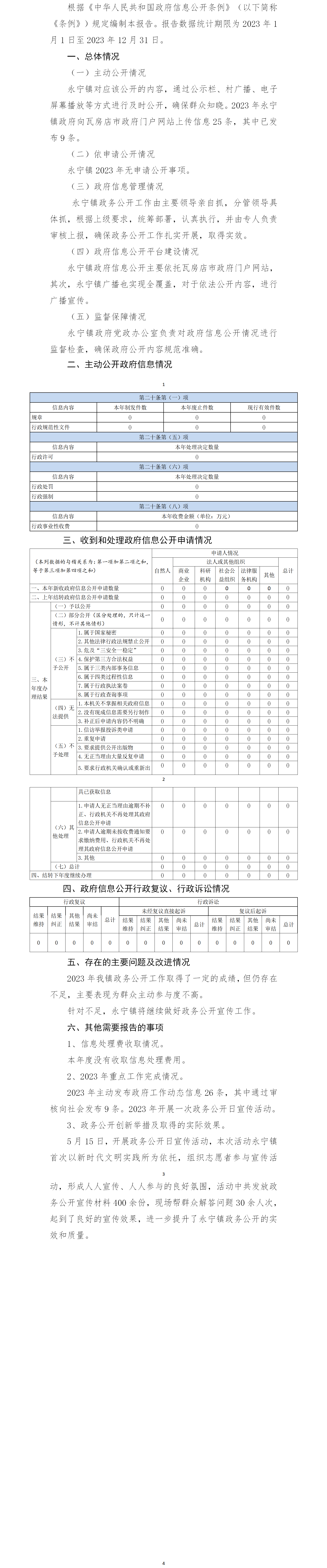 瓦房店市永宁镇人民政府2023年政府信息公开工作年度报告