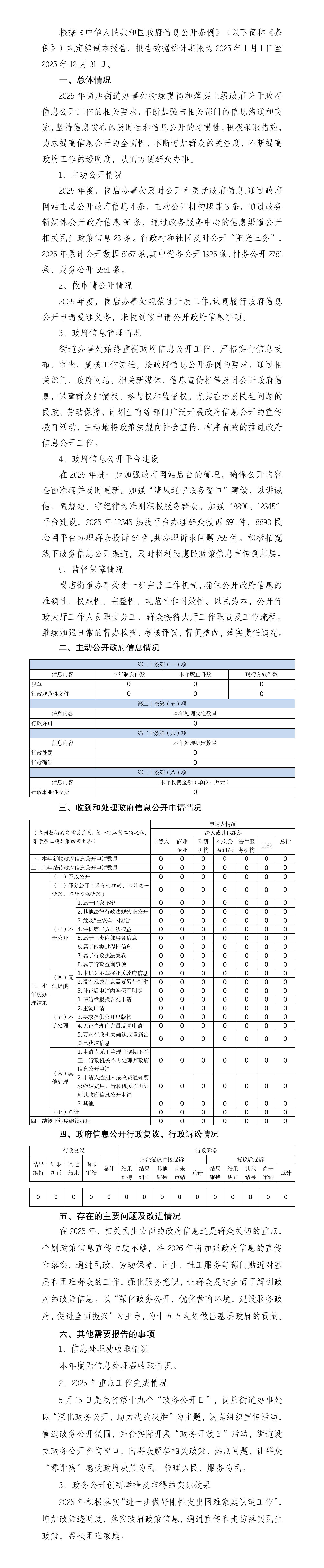 瓦房店市岗店街道办事处2025年政府信息公开工作年度报告