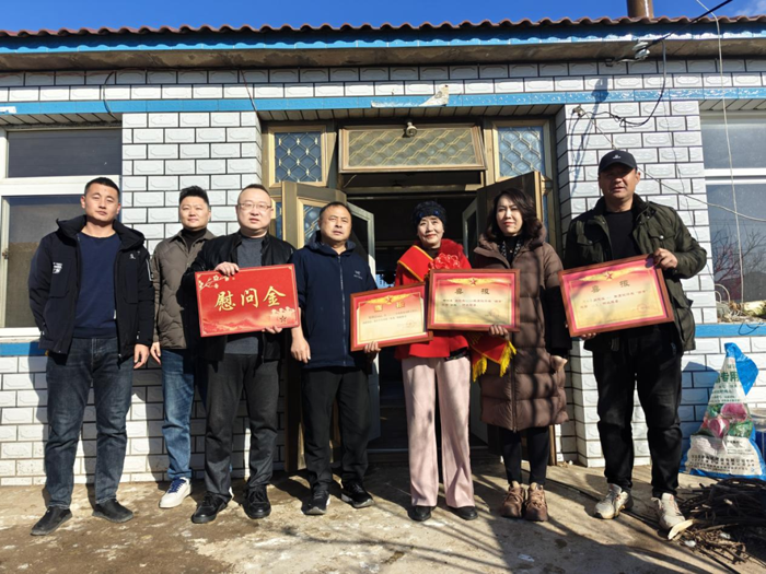 一人立军功,全家都光荣。为弘扬拥军优属光荣传统,营造参军光荣良好氛围,12月5日,瓦房店市退役军人事务局局长刘喜艳同三台满族乡乡长洪海来到三台乡石磊村,为荣获三等功、“四有”优秀士兵现役军人邹立东的家属送去立功受奖喜报和慰问金,并向他们送上党和政府的关怀和温暖。