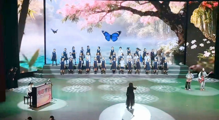本次汇报演出登台的节目均为2025年瓦房店市中小学生艺术节系列赛事的优秀作品。演出以“艺润少年心 报国正青春”为主题,串联“童年逐梦、青春绽放、挺膺担当、立志报国”四大篇章,演出在活力四射的开场舞《鼓舞中国》激情启幕,随后,广大中小学生相继表演了合唱《蝴蝶泉边》、舞蹈《AI时光》、戏曲联唱《戏韵风华》、校园集体舞《FATE》《特斯河之赞》、班班有器乐《哦!十五分钟》《强军战歌》《歌唱祖国》、班班有歌声《阳光男孩阳光女孩》《世界赠与我的》、非遗走秀《盛世华章》、舞蹈《哪吒闹海》、合唱《璀璨冒险人》、民乐联奏《象王行》、音诗画《永远不忘》、舞蹈《红色记忆》、歌伴舞《我爱你中国》等精彩节目,舞蹈、声乐、器乐、戏曲等多元艺术形式轮番登场,既展现童真烂漫的逐梦初心,又彰显青春昂扬的奋进姿态,更传递不负韶华的报国热忱,全方位呈现了瓦房店市美育育人的丰硕成果。