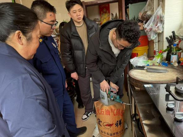 检查过程中,检查组重点排查了胶管是否老化、是否使用长寿命软管、报警器是否安装及安装位置情况、液化石油气罐放置数量及放置位置、是否违规使用调压阀、消防设施和器材是否完好有效等。针对检查中发现的问题,检查组当场对场所负责人提出整改意见,并要求其立即落实整改。同时,检查组对场所负责人进行了燃气和消防安全知识宣传教育,进一步强调燃气和消防安全的重要性,要求必须全面落实燃气消防安全措施,克服麻痹思想和侥幸心理,达到“边检查边宣传”的效果。