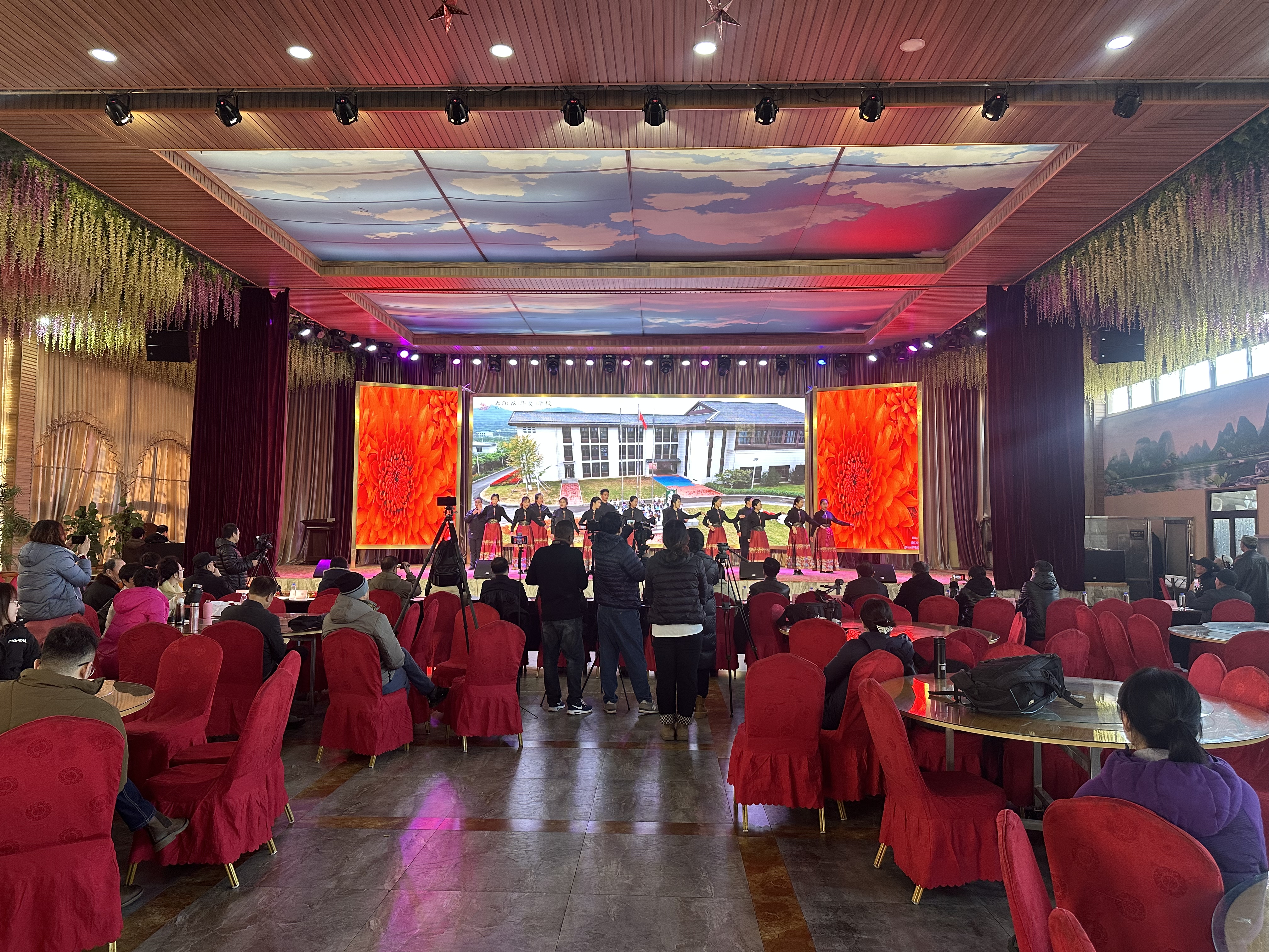 演出伊始,以宣传片《民族之花盛开的地方》对三台满族乡文旅及民族文化工作进行介绍,这是三台乡党委、政府始终以“铸牢中华民族共同体意识”为主线,以“两个共同”为主题,以“三个离不开”和“五个认同”为思想理念,带领全乡人民同心共筑中国梦的真实写照。