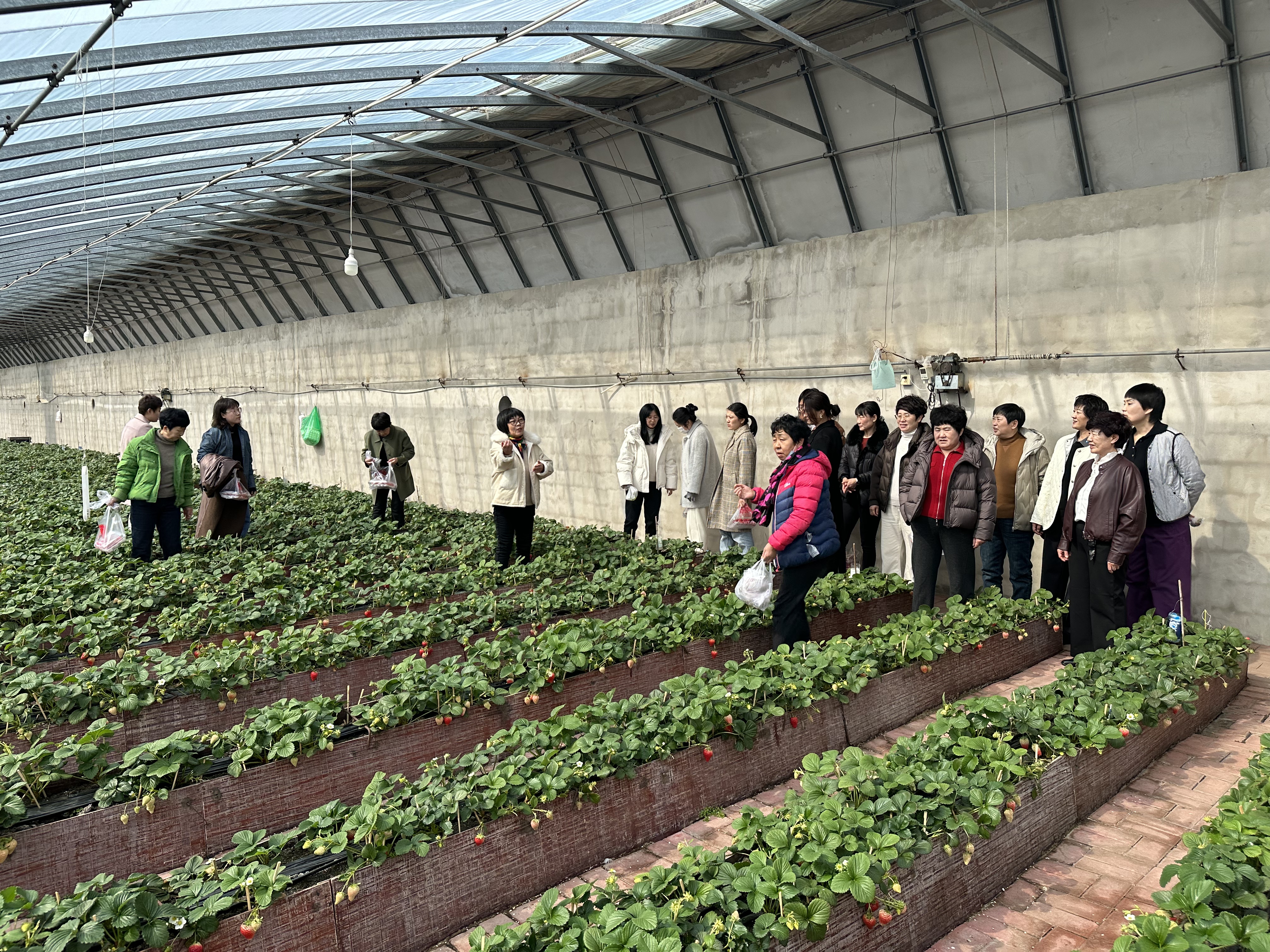 活动首站来到伊甸园草莓大棚,开展草莓种植与养护的研学教育培训。技术人员深入讲解了草莓从育苗、栽培到日常养护的全过程,包括土壤改良、温度湿度调控、病虫害绿色防控等关键技术。大家认真聆听,不时提出问题,在亲身体验中感受农业科技的魅力。