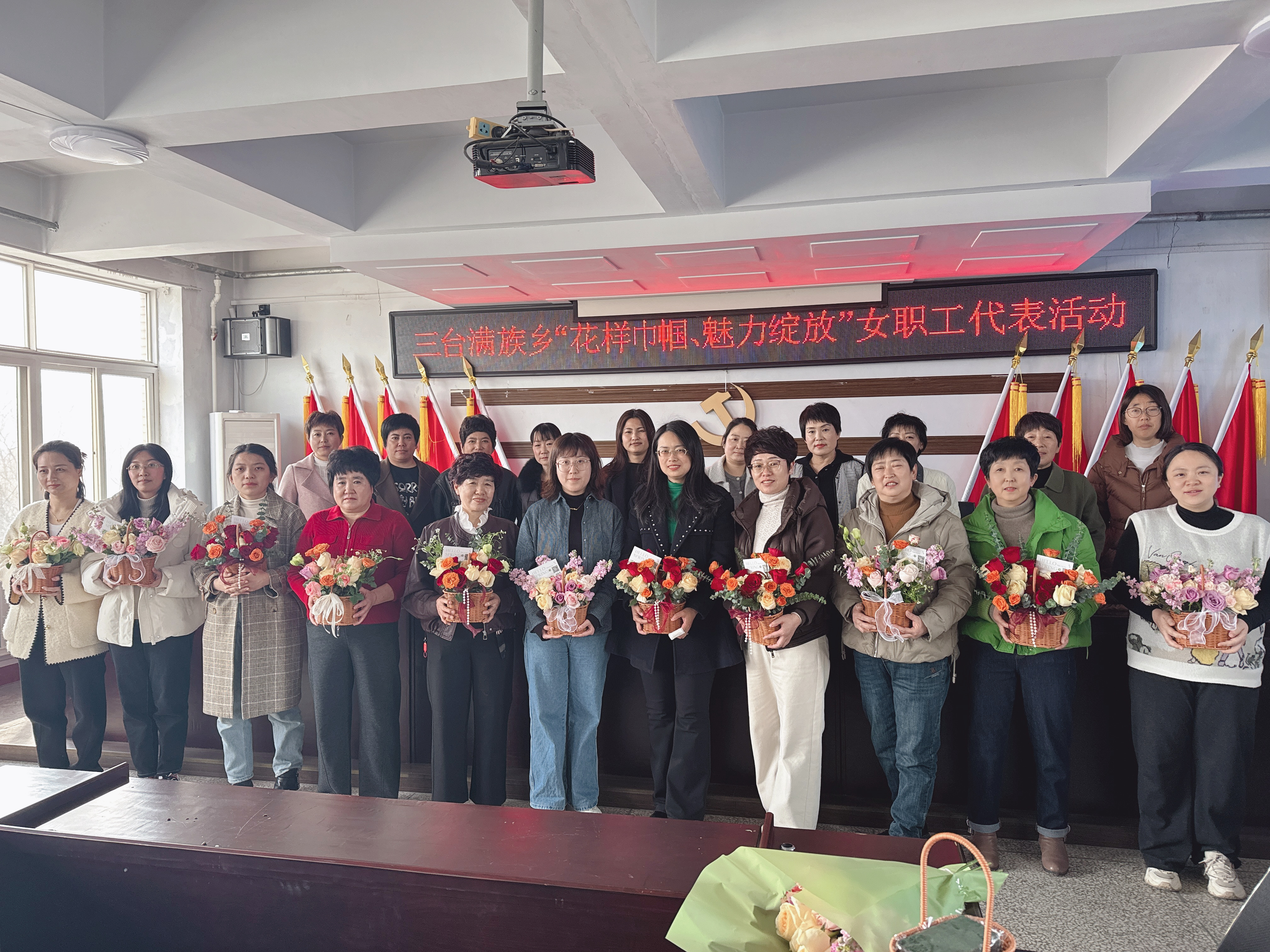 为庆祝第115个“三八”国际劳动妇女节,丰富广大女性同胞的精神文化生活,3月7日,由三台满族乡总工会、三台满族乡妇女联合会共同举办的 “花样巾帼、魅力绽放” 主题活动温暖启幕。乡机关女干部、各村妇联主席、乡企女职工代表、乡卫生院女职工代表等20余人齐聚一堂,共度专属节日。