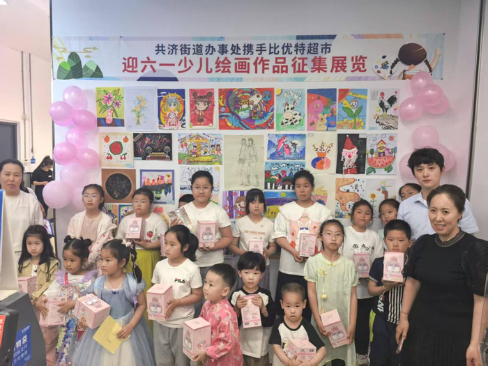 为丰富辖区儿童精神文化生活,搭建亲子互动与艺术交流平台,在六一国际儿童节来临之际,共济街道德林社区妇联与比优特超市携手举办了一场儿童画展,点亮童真世界。