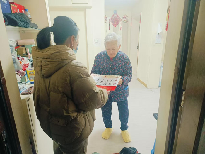 走访过程中,志愿者们带着满满的诚意给辖区老人送去台历,每走进一户人家,都与居民促膝谈心、嘘寒问暖,详细了解他们的生活状况与实际困难,反复叮嘱老人重视冬季居家安全、照顾好身体,用温情话语和暖心行动,让老人深深体会到社区大家庭的温暖。