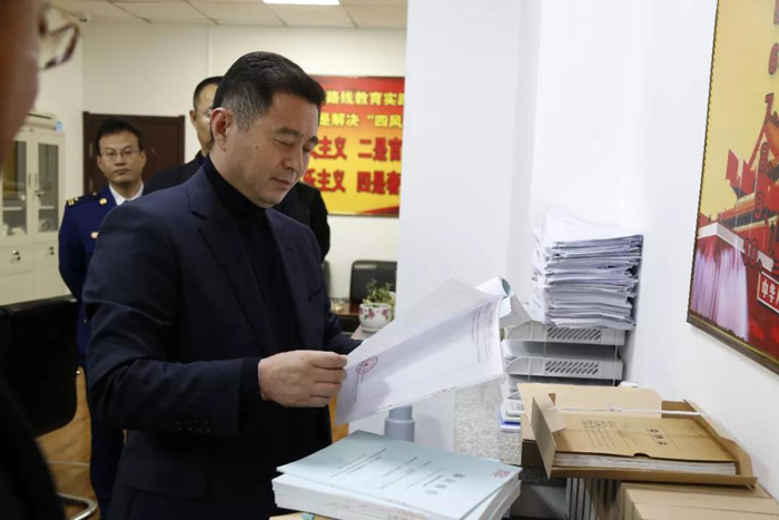 周振雷现场查看了这30个“办证难”项目的档案,详细了解房屋登记相关信息、理论政策依据、建筑质量鉴定、影像数字等档案内容建设情况。周振雷对这些档案建设工作给予了肯定,认为档案建设做得比较规范。