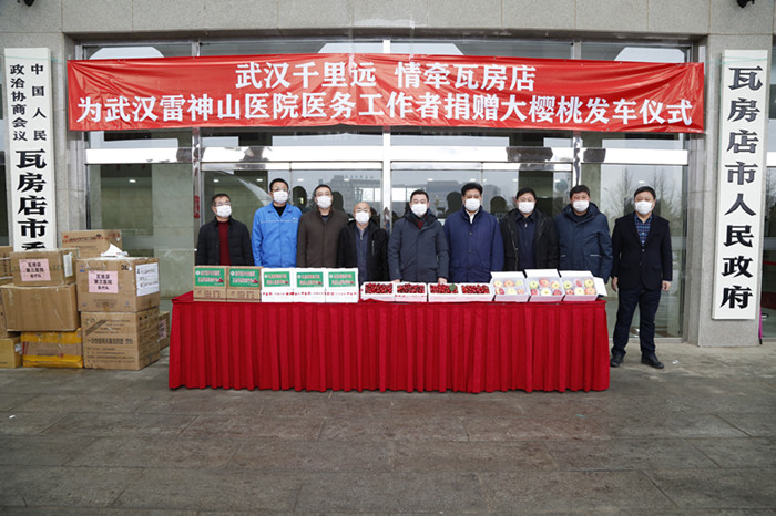 疫情无情,人间有爱,虽然我市与雷神山医院相距1900公里,但千山万水隔不断家乡人民的深情厚谊。21号上午,我市举行“武汉千里远 情牵瓦房店”为武汉雷神山医院医务工作者捐赠大樱桃、苹果发车仪式。市领导周振雷、任志友、石宏博、赵智,市政府党组成员、办公室主任薛辉参加仪式。
