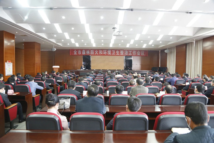 在随后召开的全市森林防火和环境卫生整治工作会议上,市长周振雷以PPT的形式, 对我市森林防火工作取得的成绩做了总结和回顾,他指出,在连续作战疫情防控、复工复产以及森林防火为高火险预警的严峻形势下,我市全方位布控,立体化防范,取得了20年来森林防火工作的最好水平,我们要继续加强工程化治理,打造硬核管控屏障;强化宣传频次,突出宣传重点,坚持以案说法,形成强大宣教声势;制定法纪支撑,设立有奖举报,严惩违规用火,形成强大的震慑力;聚焦“点”“线”“面”实现卡口路口不留白,巡护排查不间断,夯实五级包保责任制;强化队伍建设,严阵以待,工作落实有力有效。