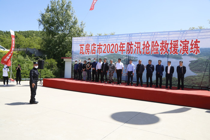 为贯彻落实上级防汛抗旱工作会议精神,全面做好今年防汛抗旱工作 ,6月4号上午,我市在松树镇举行全市 2020 年防汛抢险救援演练并召开防汛抗旱工作会议。市领导周振雷、任志友及相关部门和各乡镇、街道办事处、轴承产业开发区负责人参加会议。