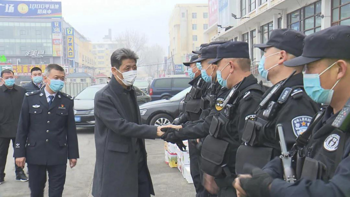 2月11日,市委书记蹇骞深入重点部门、重点区域和基层一线,实地检查节日疫情防控、安全生产、市场供应、应急消防、供暖供电等工作,走访慰问春节期间坚守岗位的各行各业广大干部职工,并代表市委市政府和全市人民向他们及家人致以新春的问候与美好祝福。市领导宋玉章、王占林、郭兆平等陪同走访。