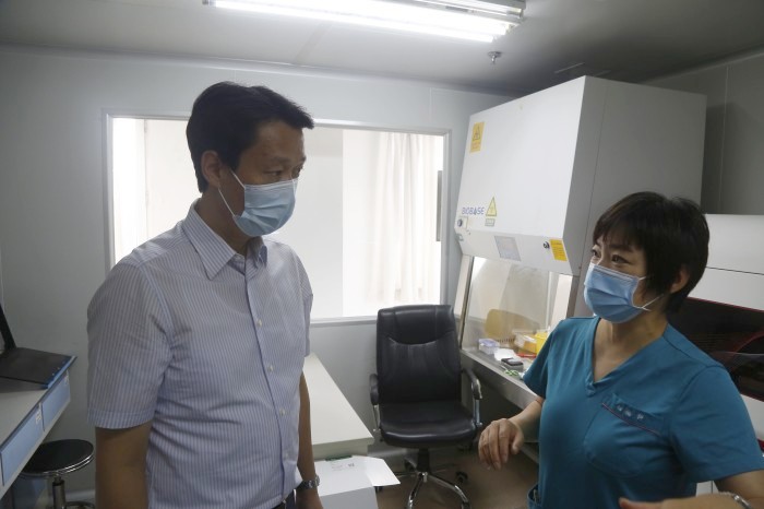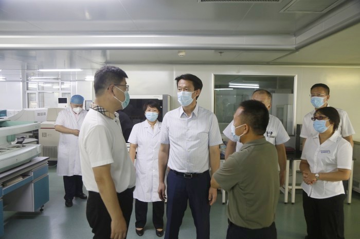李巍先后来到市中心医院和第三医院的核酸检测实验室,与工作人员进行详细交流,认真了解核酸检测从采样、加样、提取等各环节流程,详细询问有关检测结果、复核等方面情况。李巍代表市委、市政府对广大医护工作者的辛苦付出表示感谢,送去节日问候。