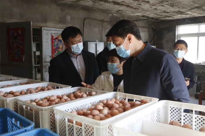 瓦房店市羽丰养殖有限公司是一家智能化蛋鸡养殖企业,自2010年设备智能化改造以来,蛋鸡饲养环境得到了有效改善,全面提升了鸡蛋产量。目前,该公司年产鸡蛋2000吨,年产效益2000万元。李巍来到智能全自动化养殖厂区,现场查看蛋品包装,询问企业养殖规模、运营模式等情况。他勉励企业要创新理念,不断完善产销对接及利益联结机制,持续引入现代养殖理念和专业技术,加大粪污资源化利用,提升养殖标准化、生态化水平,竭尽所能确保农产品的市场供应和价格稳定,坚决守护好市民的“菜篮子”。