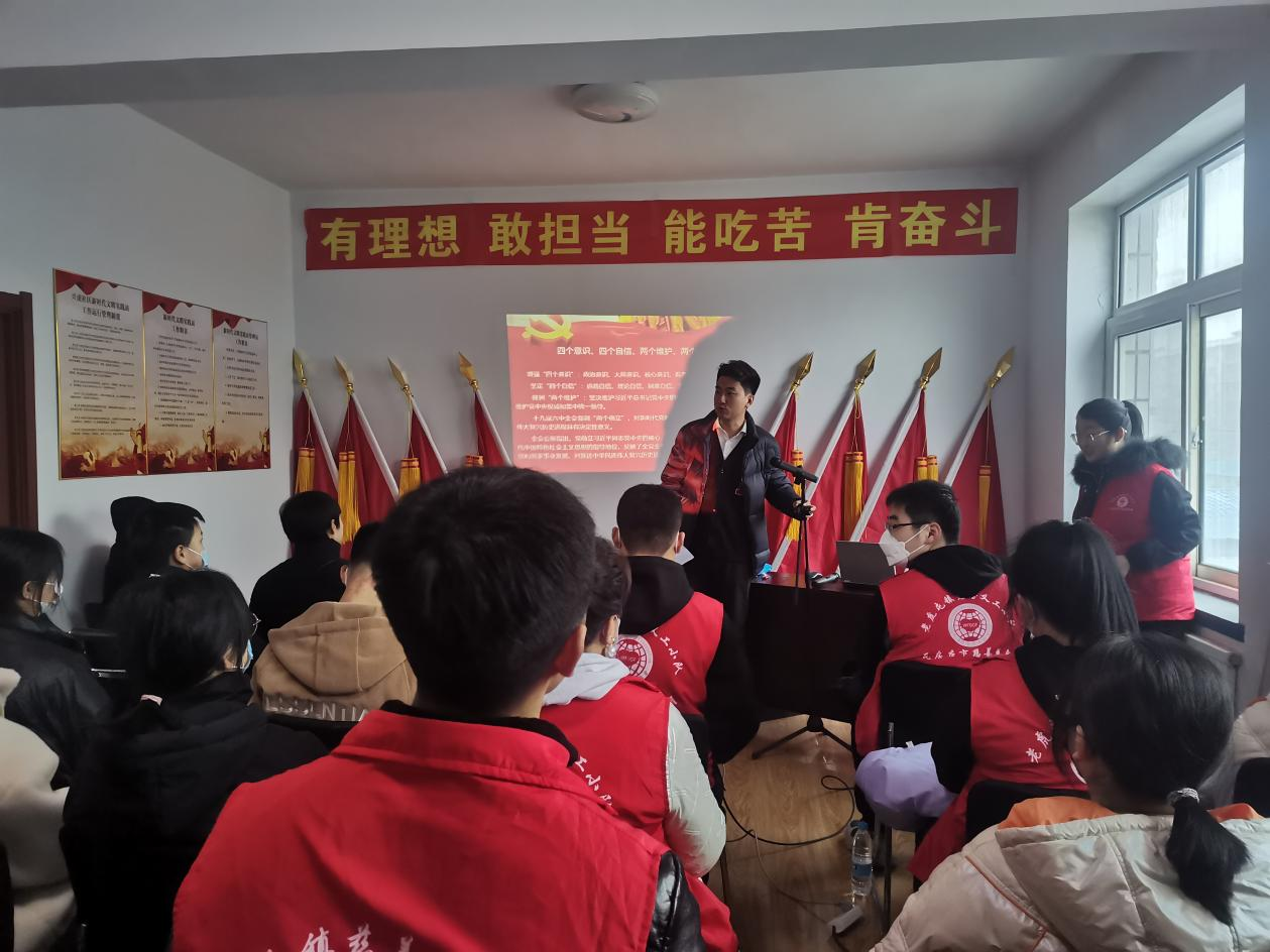 近日,老虎屯镇团委在老虎屯镇兴虎社区组织召开“有理想 敢担当 能吃苦 肯奋斗”学习二十大主题宣讲会,会议上老虎屯镇团委书记向瓦房店第三十五初级中学学生宣党的二十大精神。