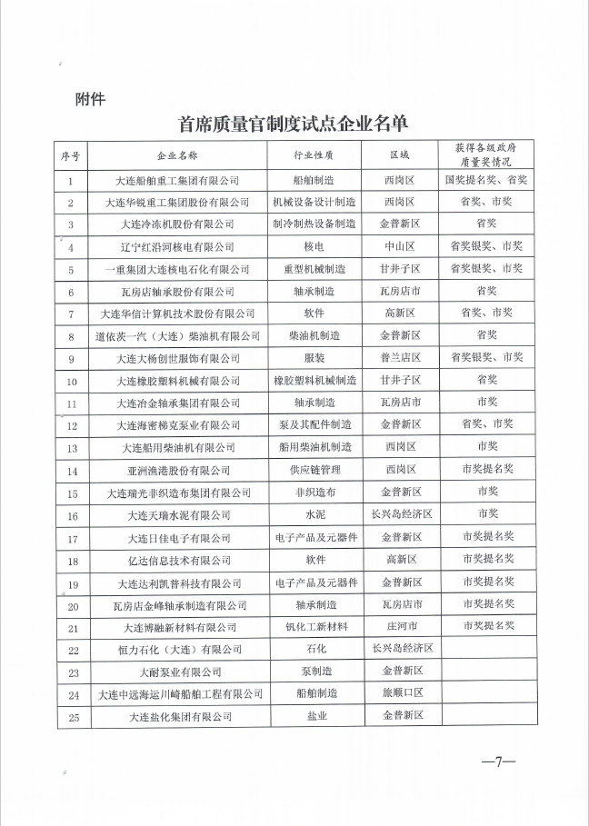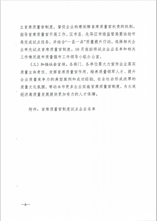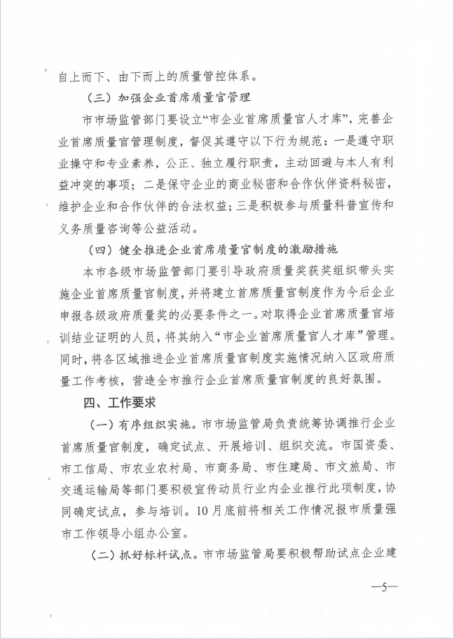 推行首席质量官制度实施方案的通知