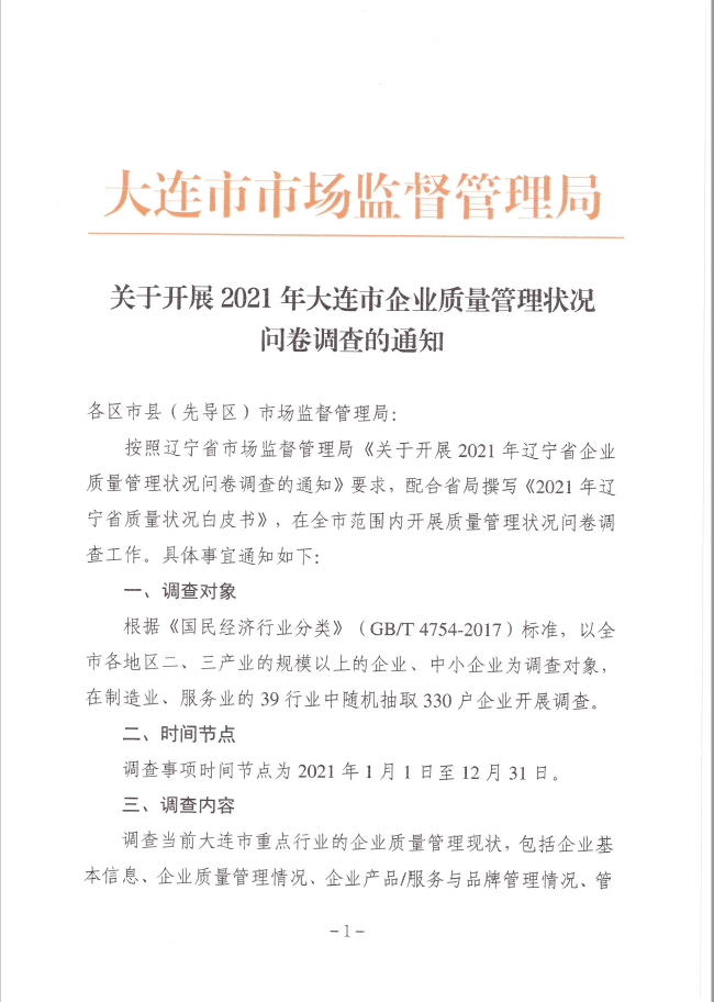 关于开展2021年大连市企业管理状况问卷调查的通知
